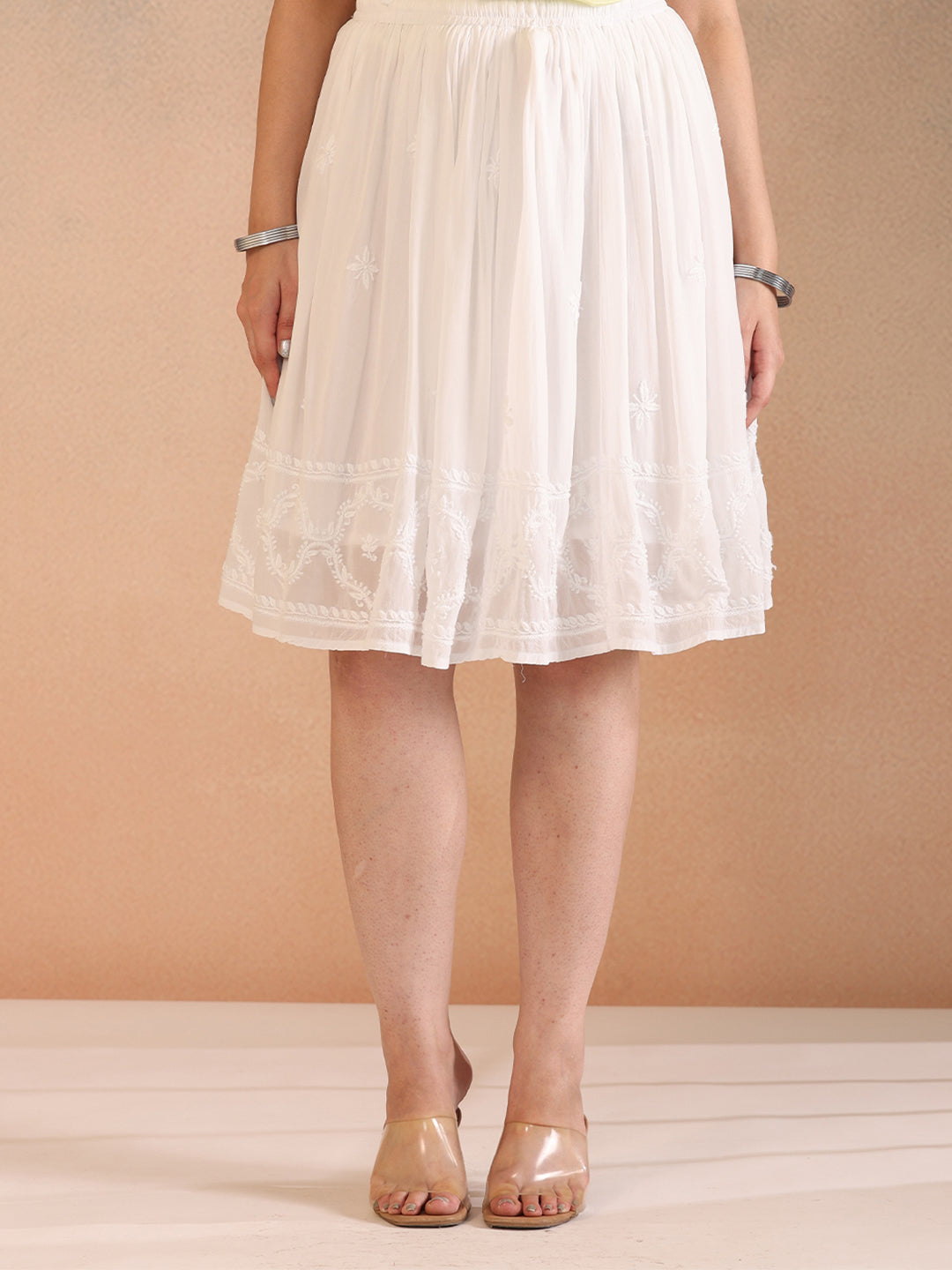 • Our lovely White NAZA GEORGETTE SKIRT features delicate hand-embroidery on 100% Premium V. Georgette fabric to keep you looking fashionable and comfortable.