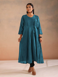 NOORZA CHANDERI TEAL BLUE ANARKALI - XS / Teal Blue