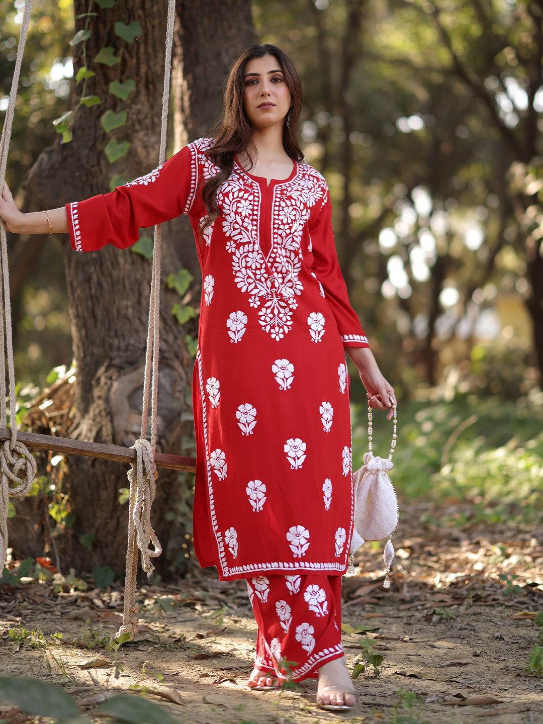- Our lovely ALFAAZ Chikankari Rayon Cord Set features delicate hand-embroidery on 100% rayon fabric to keep you looking fashionable and comfortable.