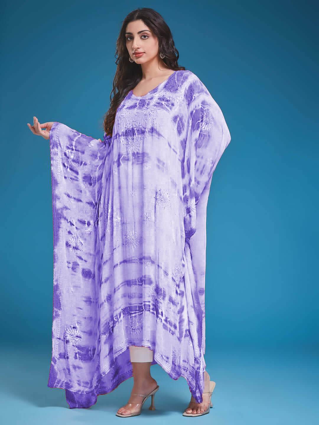 SYAALI Chikankari Tie-Dye Purple Kaftan - Freesize / Tie-Dye Purple