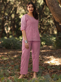 Step into summer elegance with our ARCHI Chikankari Cotton Kota Pink Coord Set. Named 'ARCHI,' meaning 'Ray of Sunshine', this set brings breezy sophistication with its intricate chikankari detailing on lightweight Cotton Kota fabric, offering a blend of timeless charm and contemporary style for the sunny season ahead.