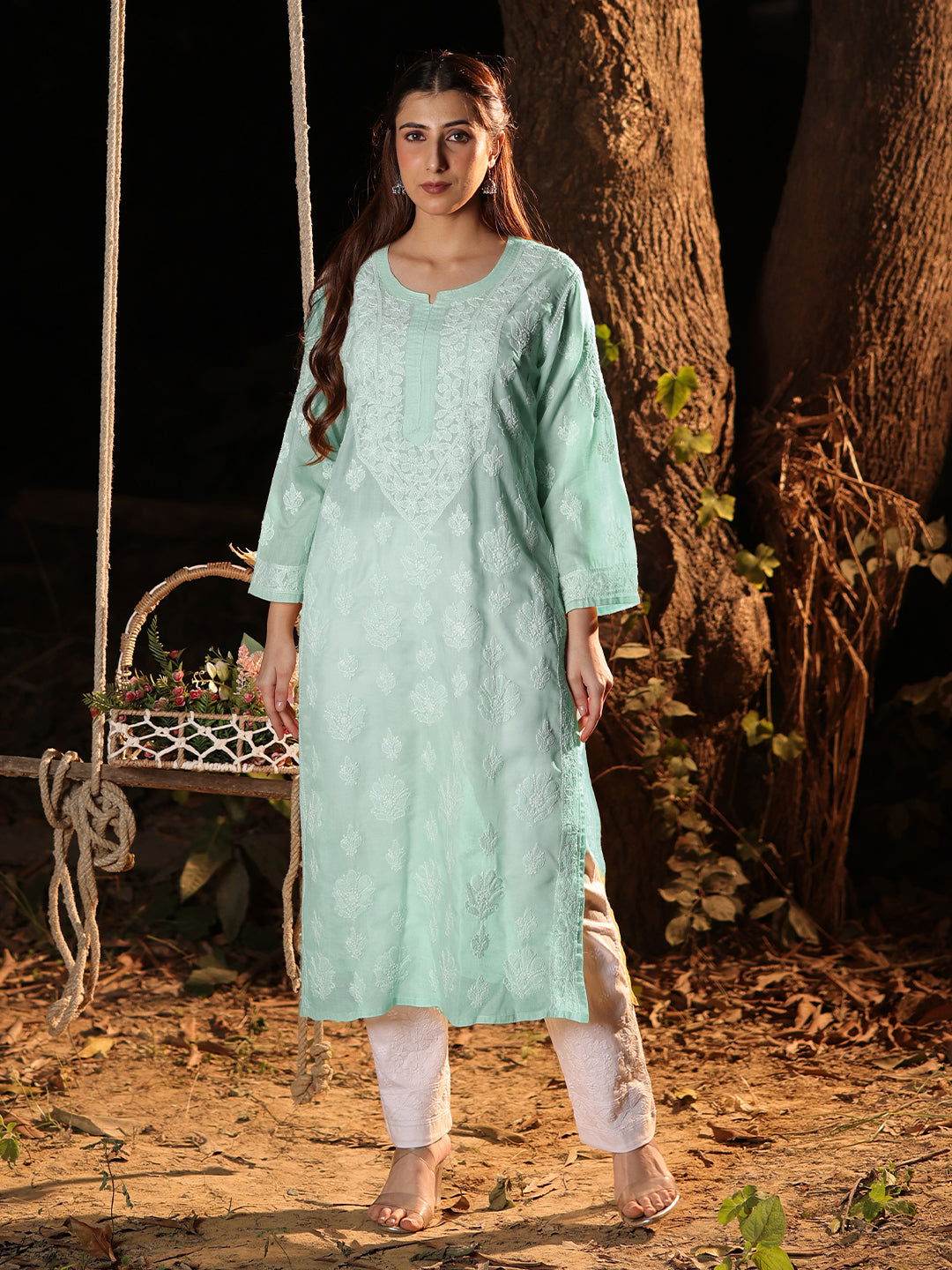 FEIYAZ Chikankari Cotton Mint Green Kurta