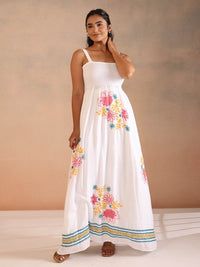 The SUFRA Rayon Chikankari Maxi Dress is an ode to softness and space — crafted in breathable rayon with a fluid A-line shape that moves with you. Its sleeveless cut and square neckline offer a structured ease, while hand-embroidered motifs add quiet detail to an otherwise minimal silhouette.