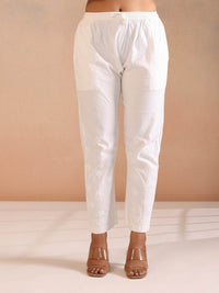 The SUTRA Cotton Lycra Chikankari Trouser brings attention to the foundation — clean lines, gentle stretch, and craft at the hem. Made in soft cotton with a hint of elastane for comfort, it’s cut to a straight silhouette that pairs easily with kurtas or tops. Hand-embroidered Ghaaspatti, Ulti Bakhia, and Phanda motifs finish the piece with subtle detail — like threads connecting heritage to modern wear.