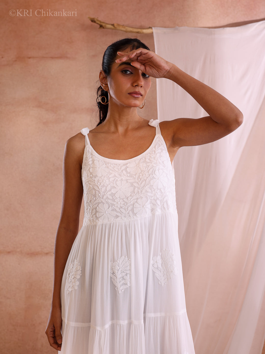 The Kiara Georgette Midi Dress embodies brightness, grace, and effortless elegance. Handcrafted by skilled artisans in Lucknow, it blends delicate chikankari embroidery with a flowing silhouette that feels romantic and refined. The fluid georgette fabric drapes beautifully while remaining light and comfortable, making it an ideal choice for warm days and special moments alike. Perfect for celebrations, evening outings, or elegant daytime gatherings, the Kiara dress brings together the timeless beauty of Lucknowi craftsmanship with a modern, graceful presence.