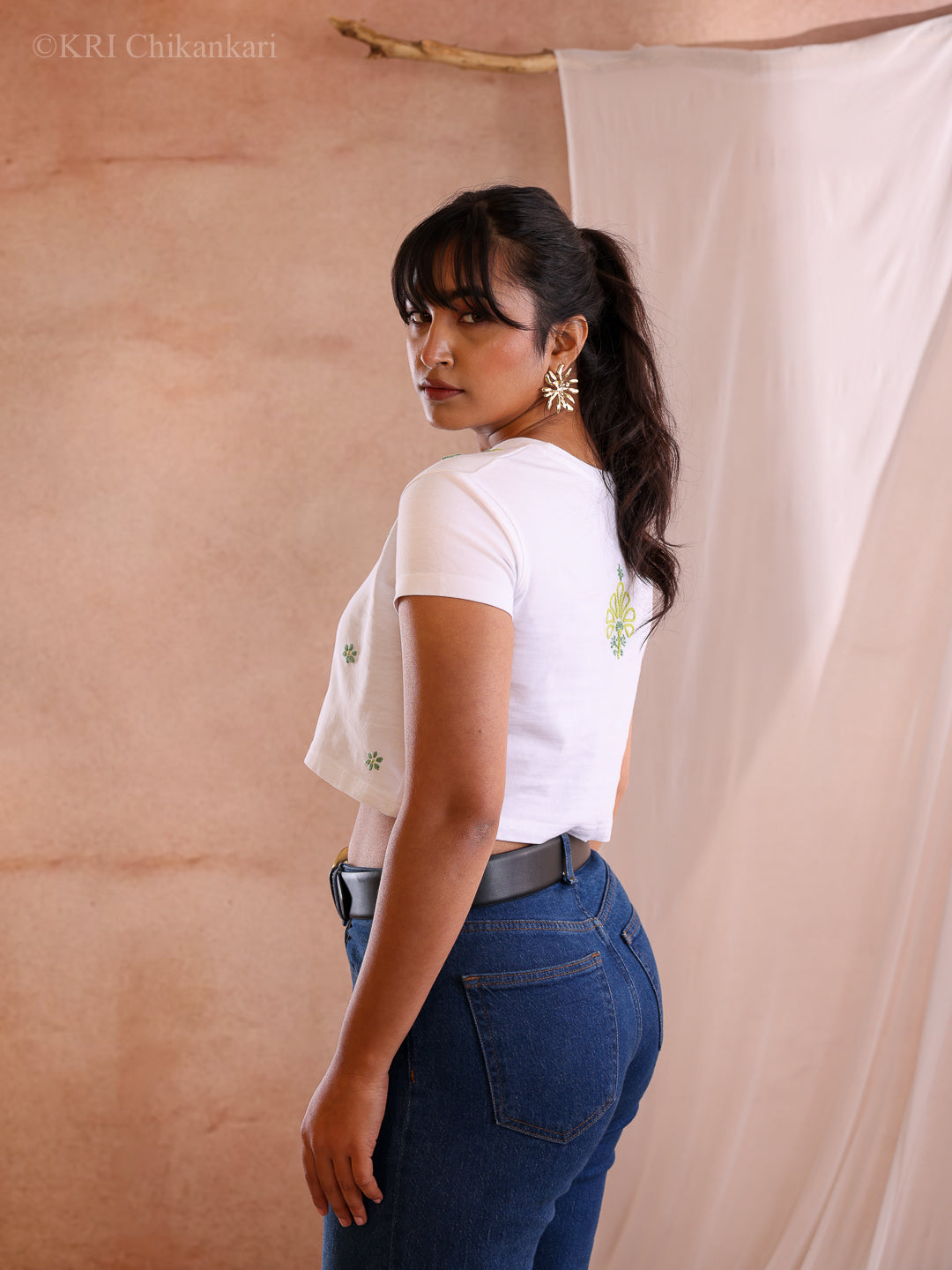 - Our lovely RENA COTTON CROP T-SHIRT features delicate hand-embroidery on 100% Cotton fabric to keep you looking fashionable and comfortable.