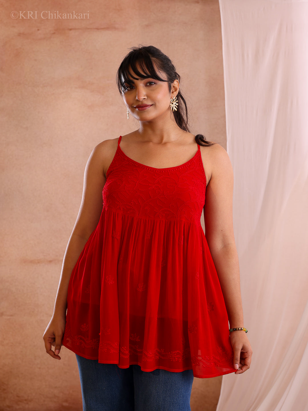 The Ziva Georgette Cami Top is designed to feel radiant and effortlessly confident, reflecting the brightness and energy its name suggests. Handcrafted by skilled artisans in Lucknow, it blends delicate chikankari embroidery with a bold, contemporary silhouette that feels fresh and modern. The fluid georgette fabric keeps the piece light and comfortable, making it ideal for warm weather while maintaining an elegant, elevated look. Perfect for evenings out, holiday dressing, or styled casually for daytime outings, the Ziva top brings together vibrant character and the refined heritage of Lucknowi craftsmanship.