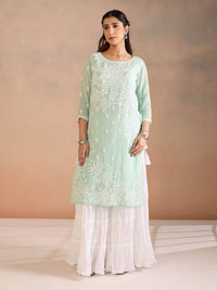 The FAIHA Viscose Chikankari Side Drawstring Kurta drapes like a breeze — fresh, floaty, and delicately detailed. Made in soft viscose georgette, it offers a clean silhouette with a subtle side drawstring detail for drama. Intricate hand embroidery across the surface brings in quiet depth, making it a graceful go-to for easy, elegant dressing.