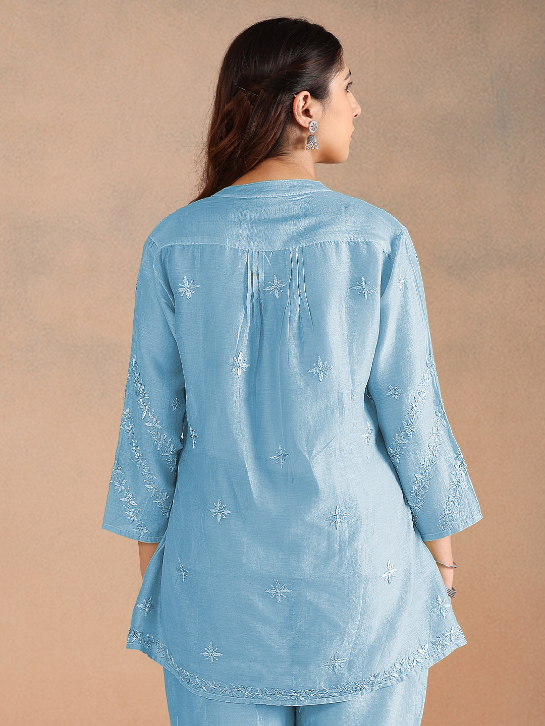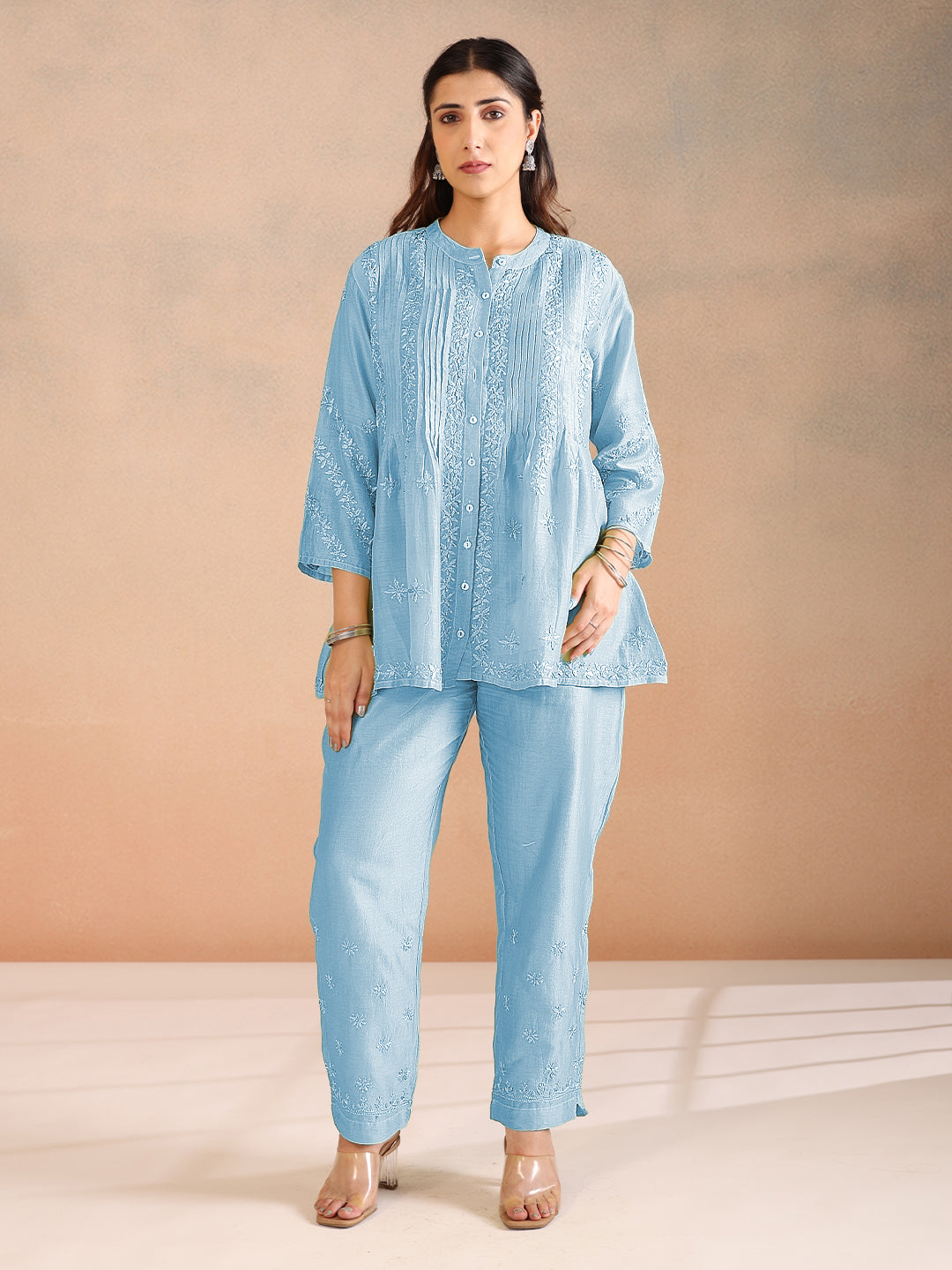 ZUBA CHANDERI BLUE CO-ORD SET - Blue / XS